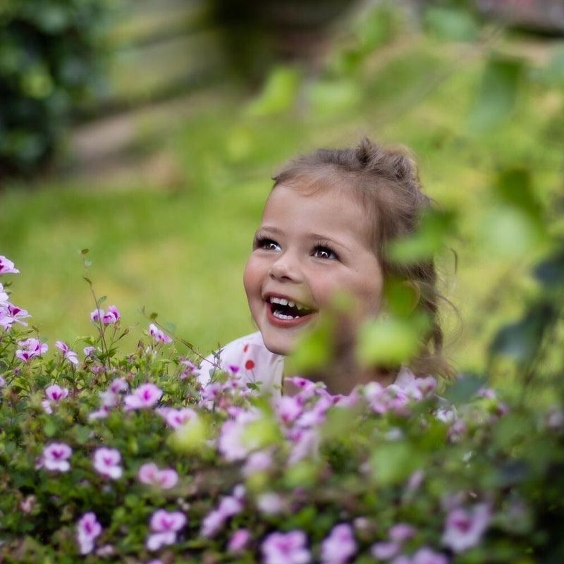 Yentl, de jongste kleindochter van de buren was daar logeren. Een lief meisje van bijna vier. Hier kijkt ze door het natuurlijke raam naar haar oma en zegt vrolijk 'boe'! Die ogen....