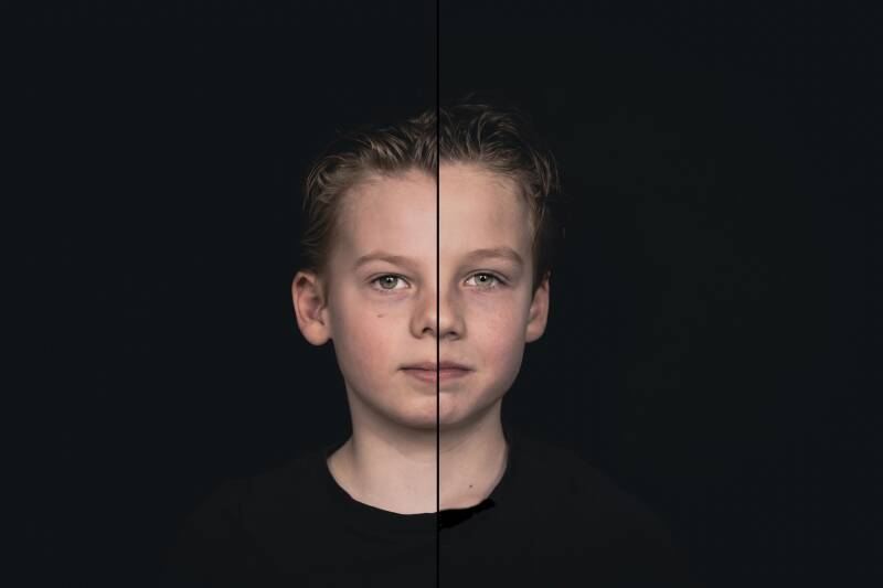 Een vriendin vroeg of ik van haar zoontjes een duoportret wilde maken, dus zo'n foto van één gezicht dat uit twee personen bestaat. Die uitdaging wilde ik wel aangaan. Om verder te oefenen heb ik toen ook van mezelf en mijn zusje en van de dochters van mijn zusje een duoportret gemaakt.