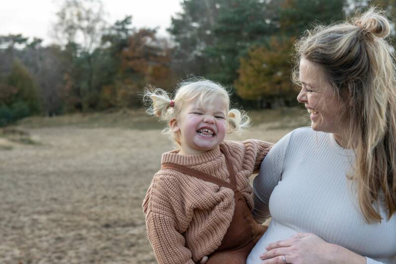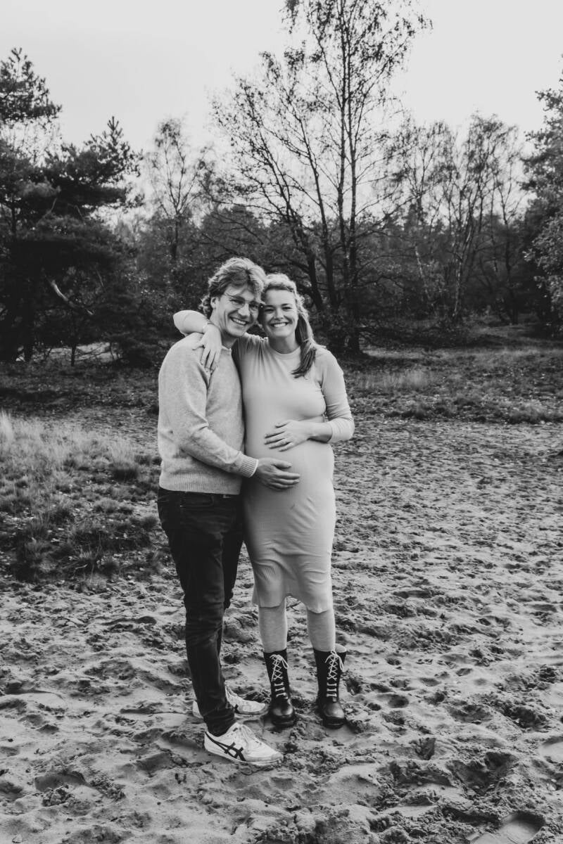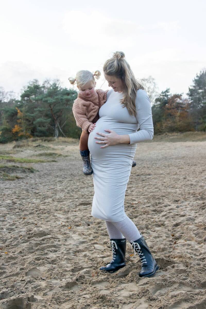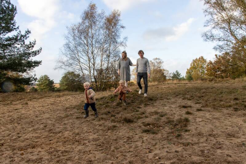 Leuk! Oud-collega Annouk volgt mij op instagram en nam contact op voor een fotoshoot. Voor de derde (en laatste zoals ze zelf zegt) zwanger wilde ze dit moment vastleggen met haar gezin. We spreken een weekend af en hopen op mooi weer. De zondag dat we elkaar ontmoeten op de Rozendaalse hei regent het.... volgens de voorspelling een klein buitje. En dat is gelukkig ook zo!