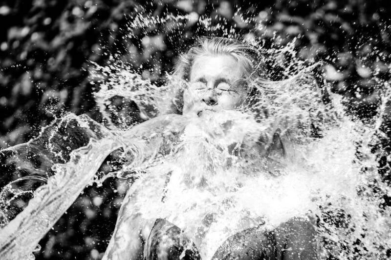 Ik was wat aan het prutsen met een plantenspuit toen Ron zei: zal ik een emmer water over je heen gooien, is ook een gaaf effect. Hij had niet verwacht dat ik ja zou zeggen :). Bij emmer 3 was het raak (1e emmer te laat, 2e emmer te vroeg) Lol dat we hadden, was ook heerlijk weer voor vanmiddag. #waterymoments #zelfportret #zwartwitfotografie #water #summer #summerdays